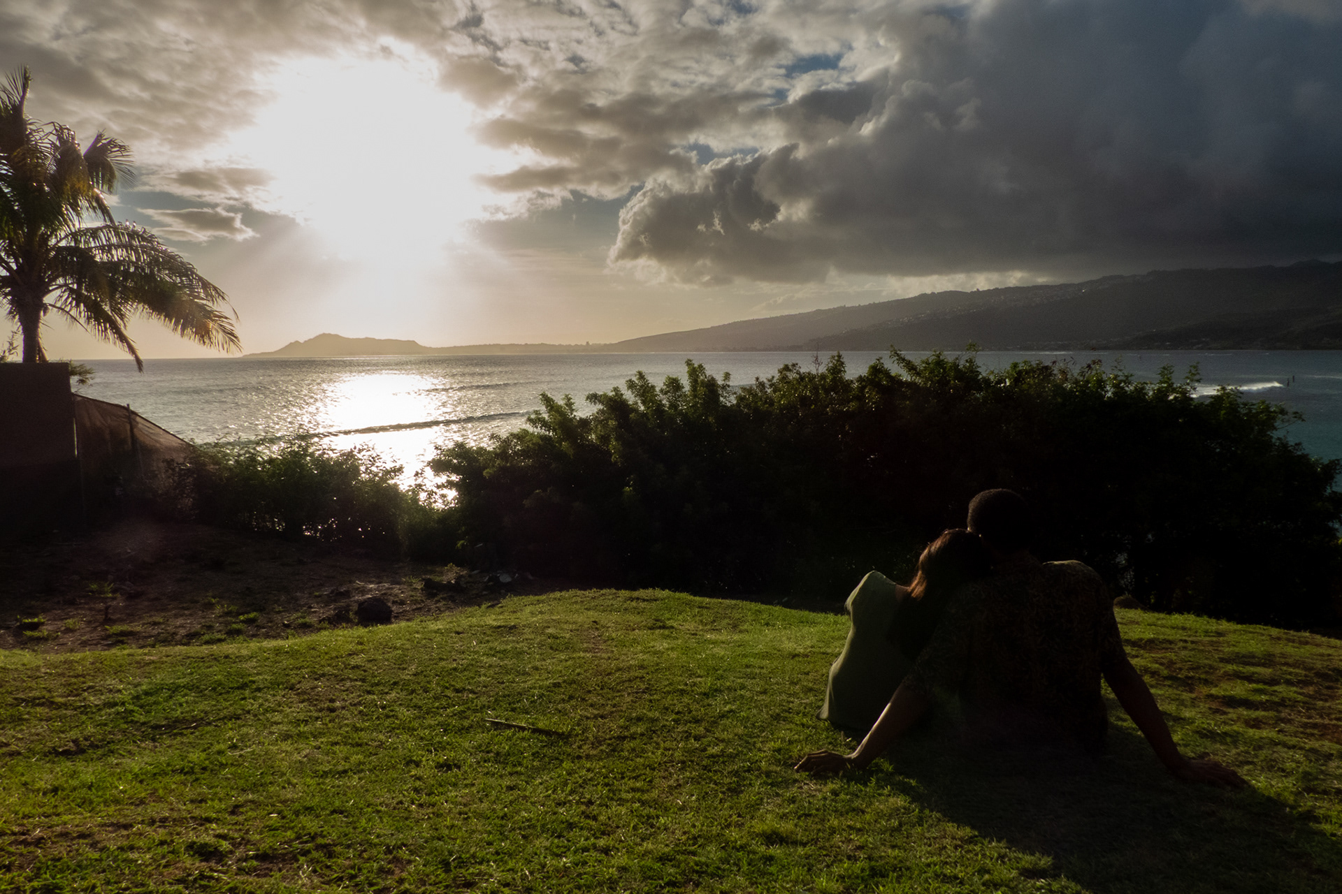 Justin and Jenny are a couple originally from Kaneohe, HI. They pose for pictures during a beautiful sunset at Koke'e Beach Park in Hawaii Kai, Honolulu, HI.